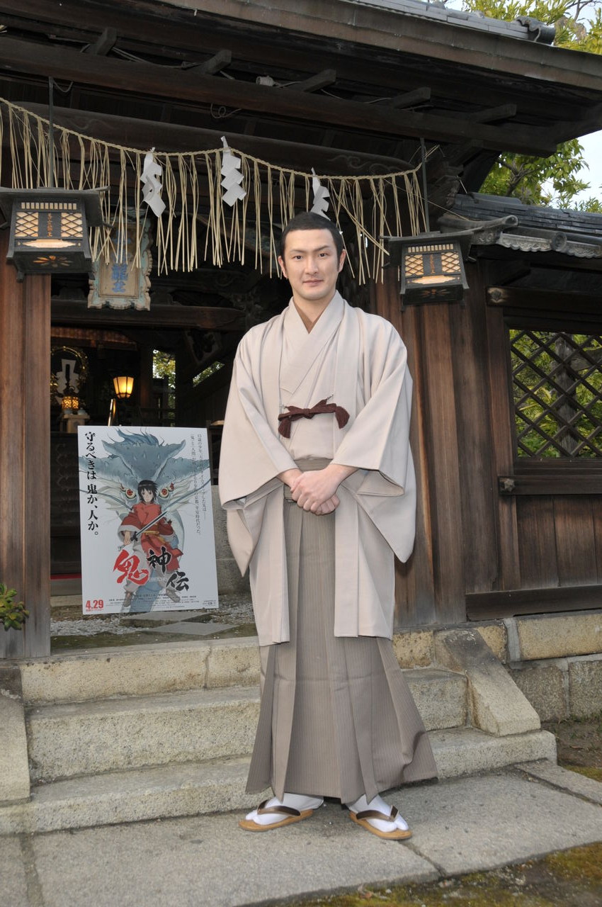 中村獅童が7日、アニメ映画「鬼神伝」(4月29日より全国ロードショー)のヒットを祈願し、京都の神泉苑で開かれた祈祷式に参加した。同作は鬼対人が戦う1200年前の京都にタイムスリップした15歳の少年が、謎の僧侶から自分が神聖なる力を持った「救いの御子」であることを告げられ、自らの運命に立ちむかう歴史冒険アニメーション。中村獅童は謎の僧侶、源雲の声を担当している。
