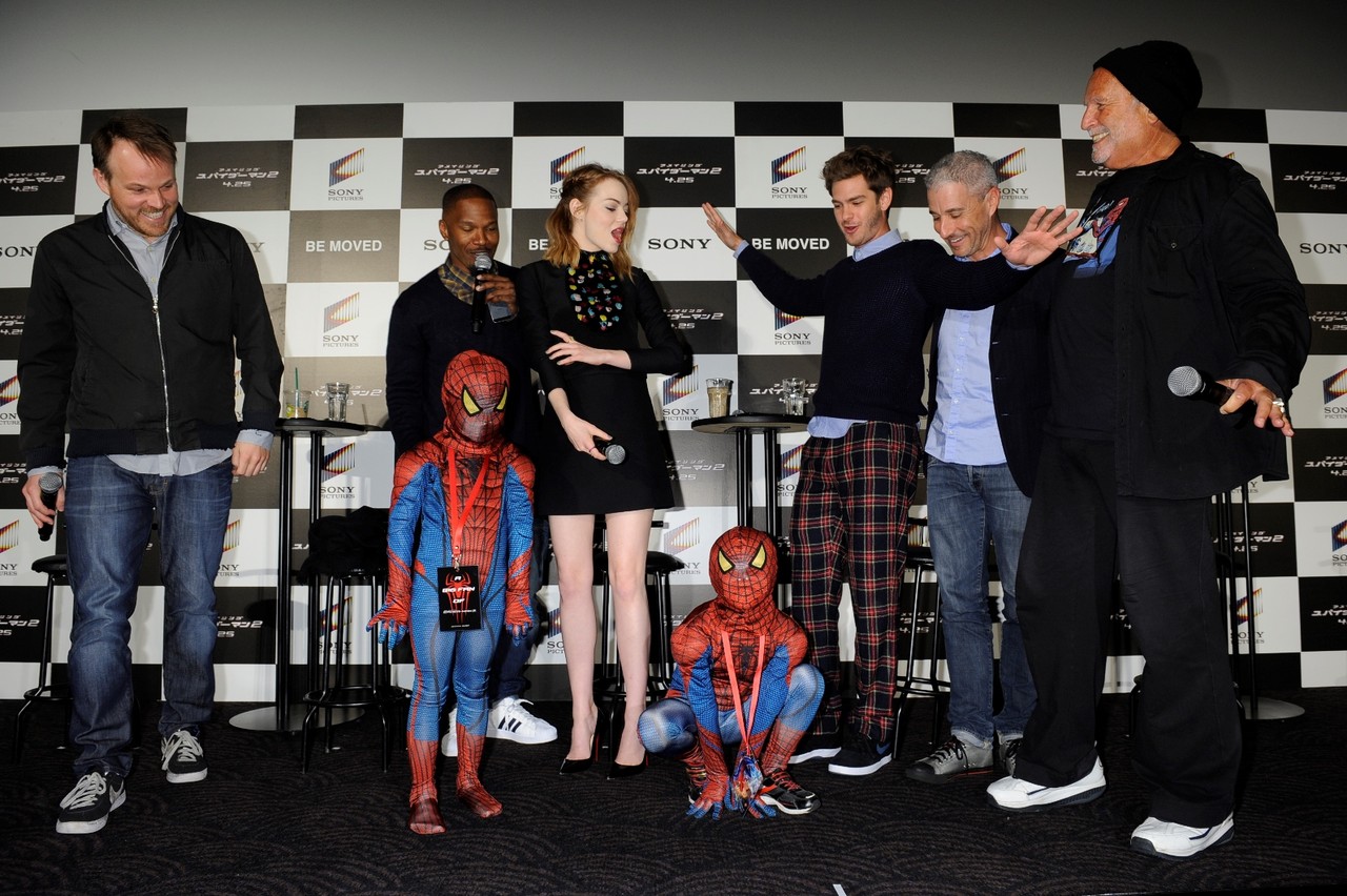 『アメイジングスパイダーマン2』の公開に先がけ、主人公ピーター・パーカー=スパイダーマンを演じるアンドリュー・ガーフィールドやマーク・ウェブ監督ら主要キャストとスタッフの来日記者会見が31日、東京・六本木のTOHOシネマズ六本木ヒルズで行われた。