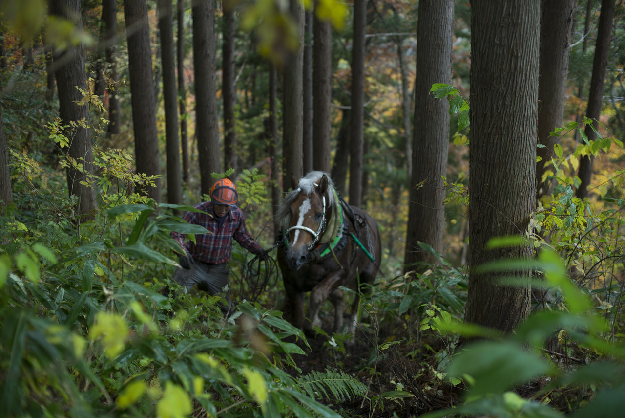 尾立愛子監督の『里馬の森から』は山から木を馬と共に搬出する「馬搬」を巡る生活や文化を1年に渡って記録した作品。50年ほど前にはよく見られた人が馬と一緒に暮らす生活は今ではまず見ることができない。だが、機械に頼らず、山や自然を破壊しない馬による木材の搬出が最近になって最注目されている。上映後には「馬と暮らす里山」と題するシンポジウムが開催された。