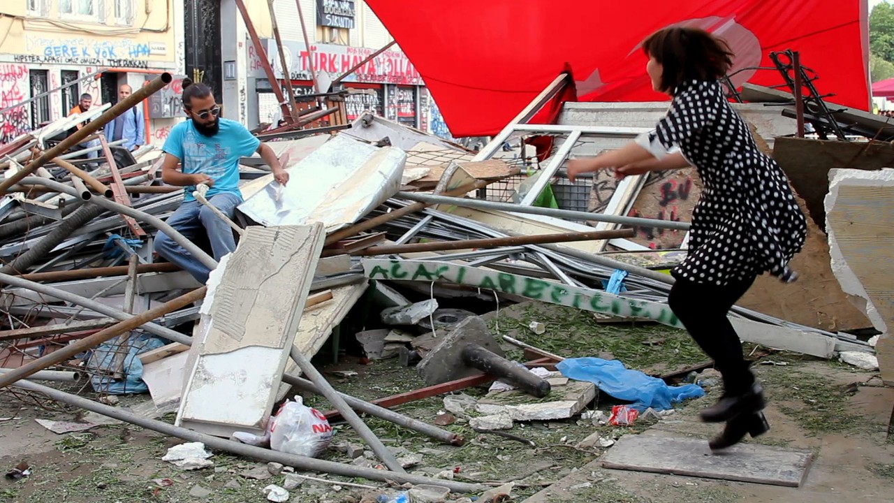 『100万回のステップ』はタップダンサーの視点から見たイスタンブールの社会抗議運動を描いた作品。軽快な足音を立てながら路上でステップを踏む女性のタップダンサー。どんなにつまらない日常だって、街に流れる音楽とリズムは、思わず人々を楽しくさせてしまう魔法がある。政府に抗議するデモ隊のシュプレヒコールでさえリズミカルに聞こえてくる。そんなデモ行進に向けて、警官隊が催涙ガス弾を打ち込む。ダンサーは戦う人々を目にし、彼女のタップの音は、彼らの行動と連動するかのように力強く鳴り響き続ける。この映画を見ていると、世の中のあらゆるものが躍動しているかのように感じられるから不思議だ。皿を叩く音、ペットボトルを叩く音、建物を解体するハンマーの音さえがリズムであり、音楽なのだ。