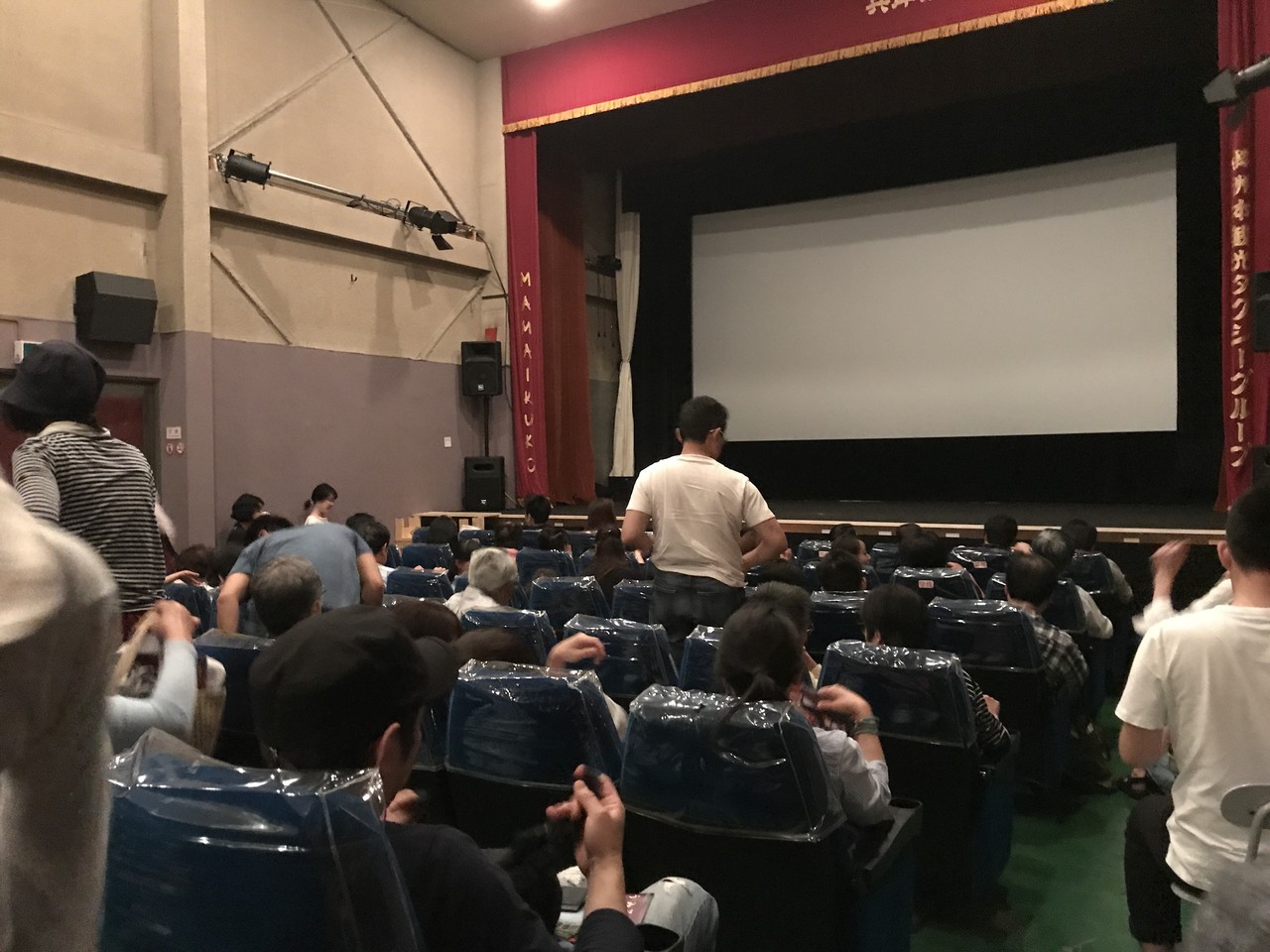 会場となった洲本オリオン(レトロ映画館) 午前11時からは、この映画祭の主宰者でもある大継康高監督の『あったまら銭湯』が上映された。この劇場の観客席は99席あるが、上映開始時にはほぼ満席となり、補助席が並べられるほどの盛況ぶりだった。このあと、洲本オリオンでは午後1時半から淡路島を舞台にした『瀬戸内少年野球団』(篠田正浩監督)を上映した。
