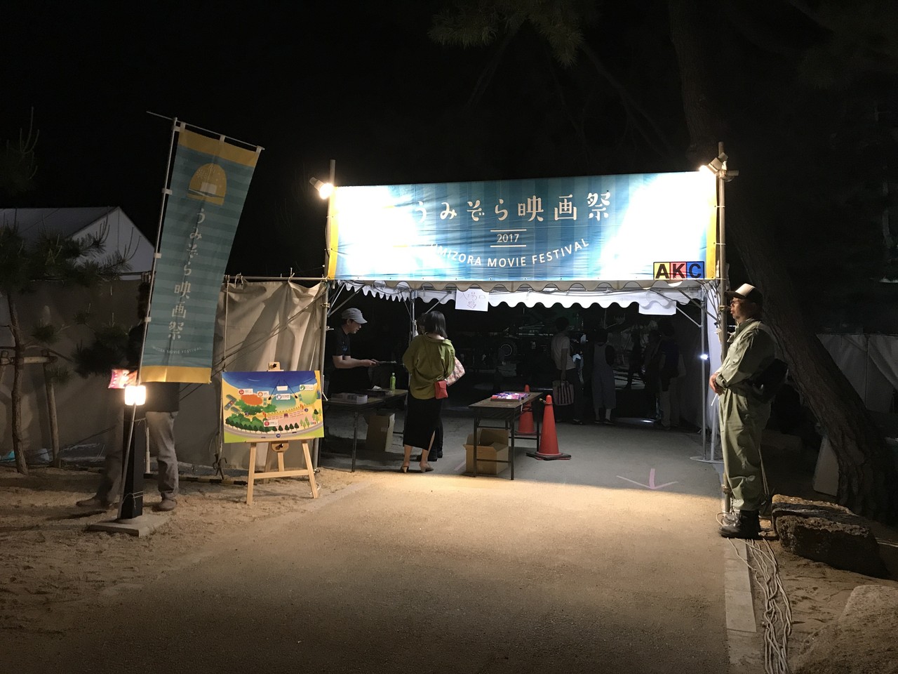 大浜海水浴場では、夕刻からの映画上映に先立ち、浜辺に併設された音楽ステージで、午後12時半から「うみぞら映画祭2017」が開催された。2016年の秋に「淡路島レディオ音楽祭」を手掛けた淡路島レディオがステージをプロデュースし、そのときの音楽祭に出演した島内のバンドが演奏やパフォーマンスを披露した。
