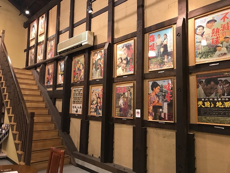 左右の壁面には様々な日本映画のポスターが展示されている。