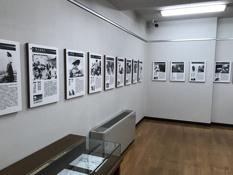 2階では主に新藤兼人監督の作品がモノクロのパネルで紹介されている。