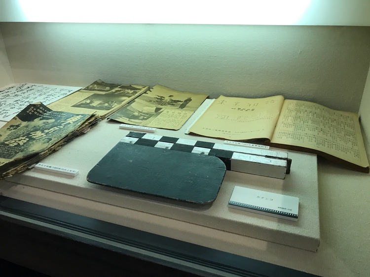 ショーケースの中には、雑誌「キネマ旬報」に掲載された『東京物語』のシナリオや特集記事のページなどが展示されている。