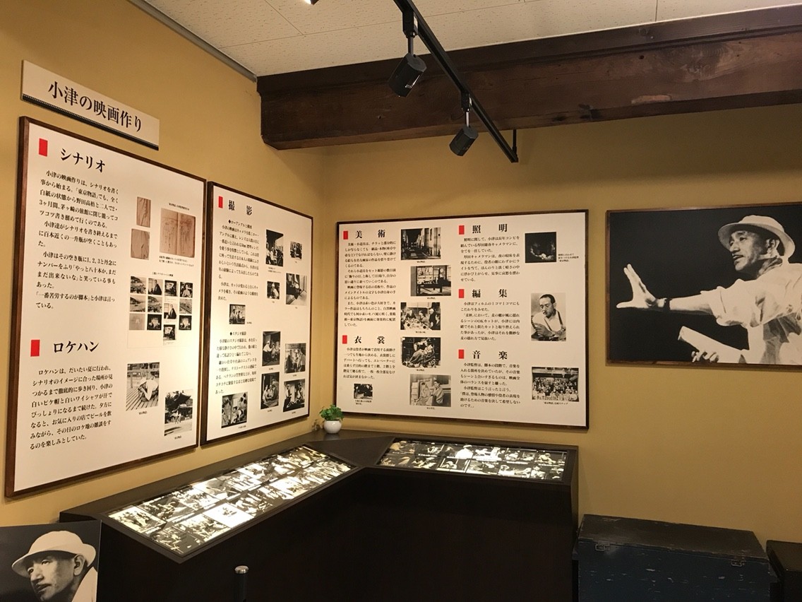 入口を入ると、すぐ右側に映画監督小津安二郎のコーナーが目に入る。