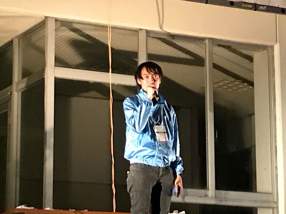 メイン会場の「真夜中に抜け出して」では、午後6時半から、はじまりの挨拶があり、その後、映画上映とトークショーが交互に実施される。開場後しばらくすると、スクリーンの前の広場はみるみるうちに参加者で埋まっていった。
