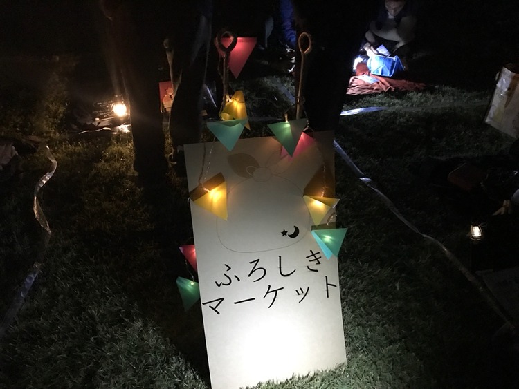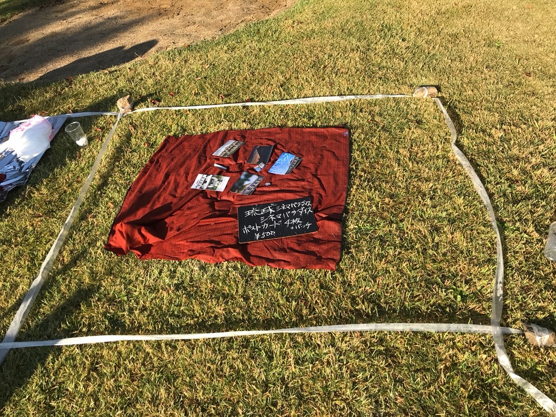 「放課後、伸びた影と」の会場の様子このエリアでは、森の映画祭で初の試みとなるフリーマーケット「ふろしきマーケット」が行われた。 1つのショップにつき、1メートル50センチ四方のエリアで出店者が各自のオリジナル商品などを販売した。