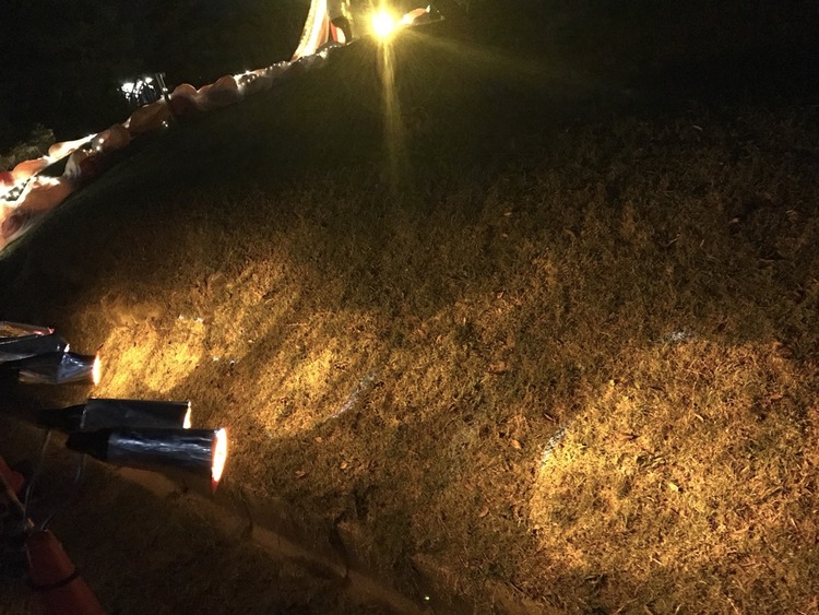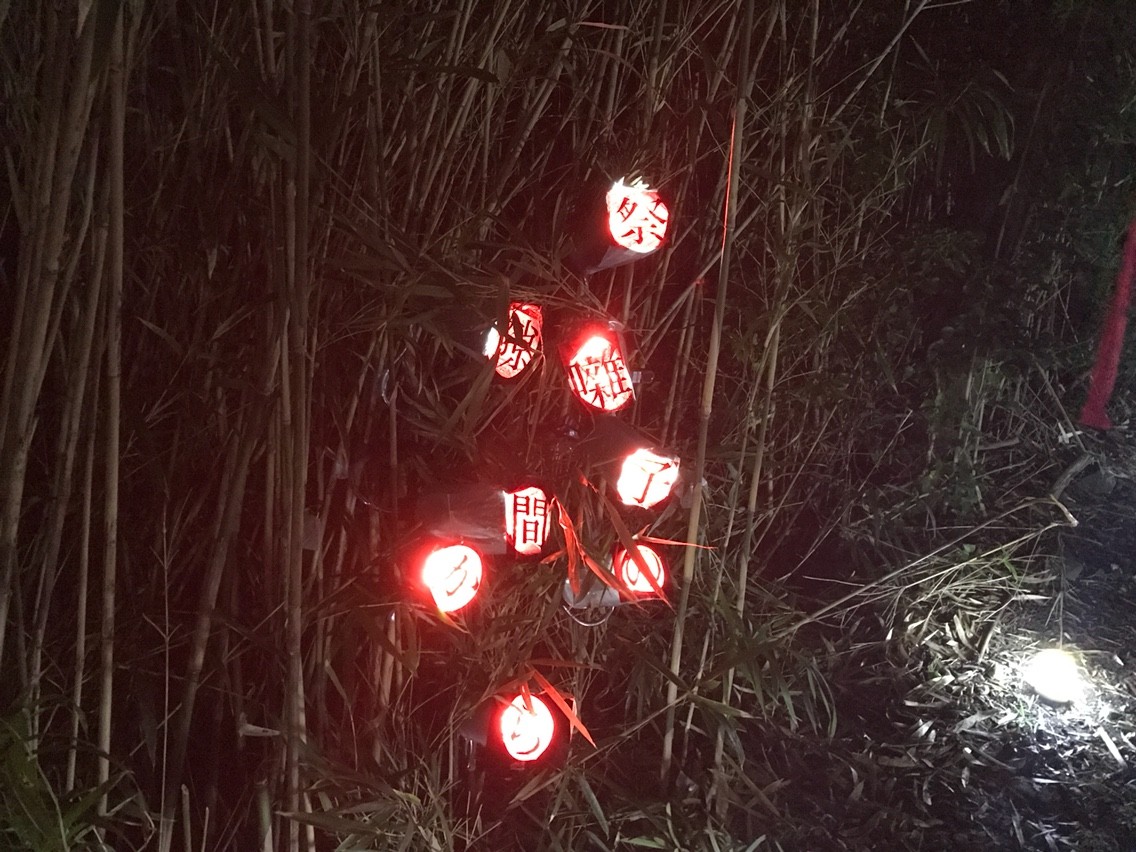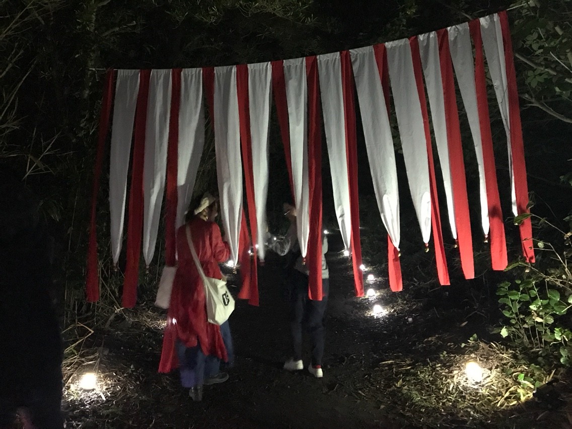 もうひとつのサブステージである「祭囃子の隙間から」へは、舗装されていない暗い道を歩いていく必要がある。道の途中には紅白の幕や赤い提灯などが飾られており、祭囃子がスピーカーから流されている。