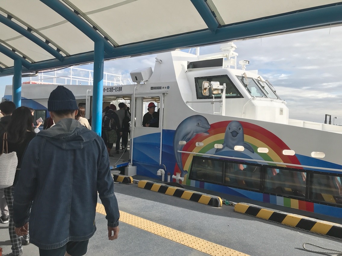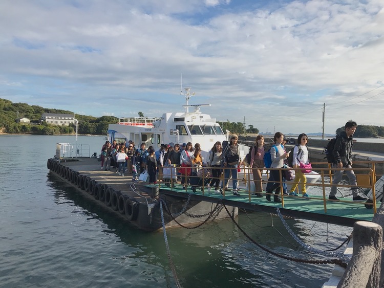 バスに乗って15分ほどで佐久島行きの船乗り場のある一色港に到着した。この日の乗船客は映画祭の参加者が多い。だが、佐久島はアートプロジェクトで有名であり、釣りの名所としても知られている。普段の休日は多くの観光客でにぎわっている。