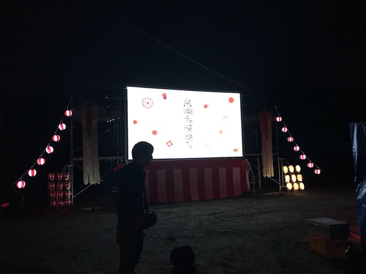 村祭りの会場のような雰囲気の上映会場