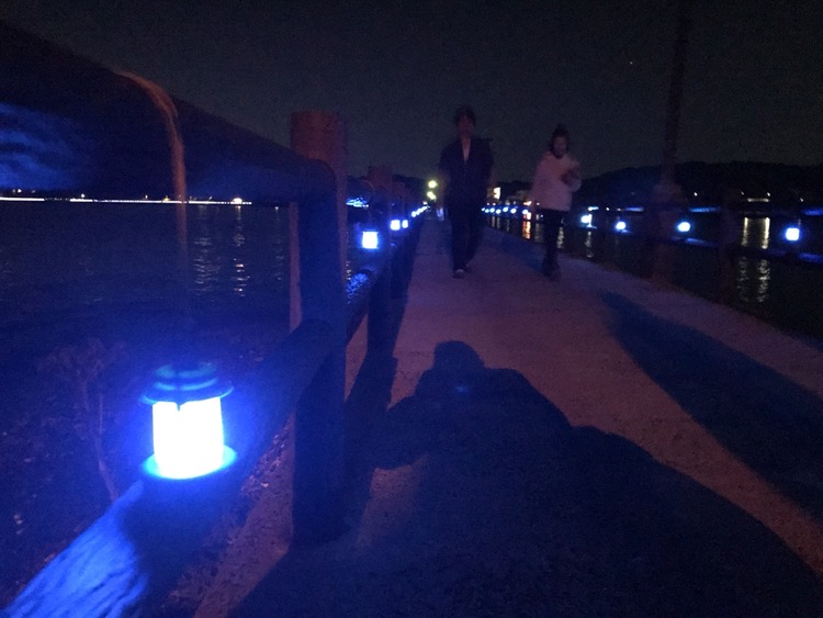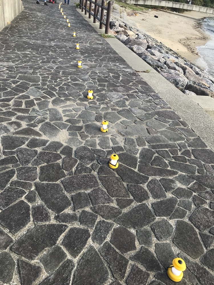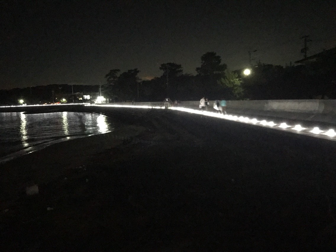 海岸付近に並んだランタンが幻想的だ