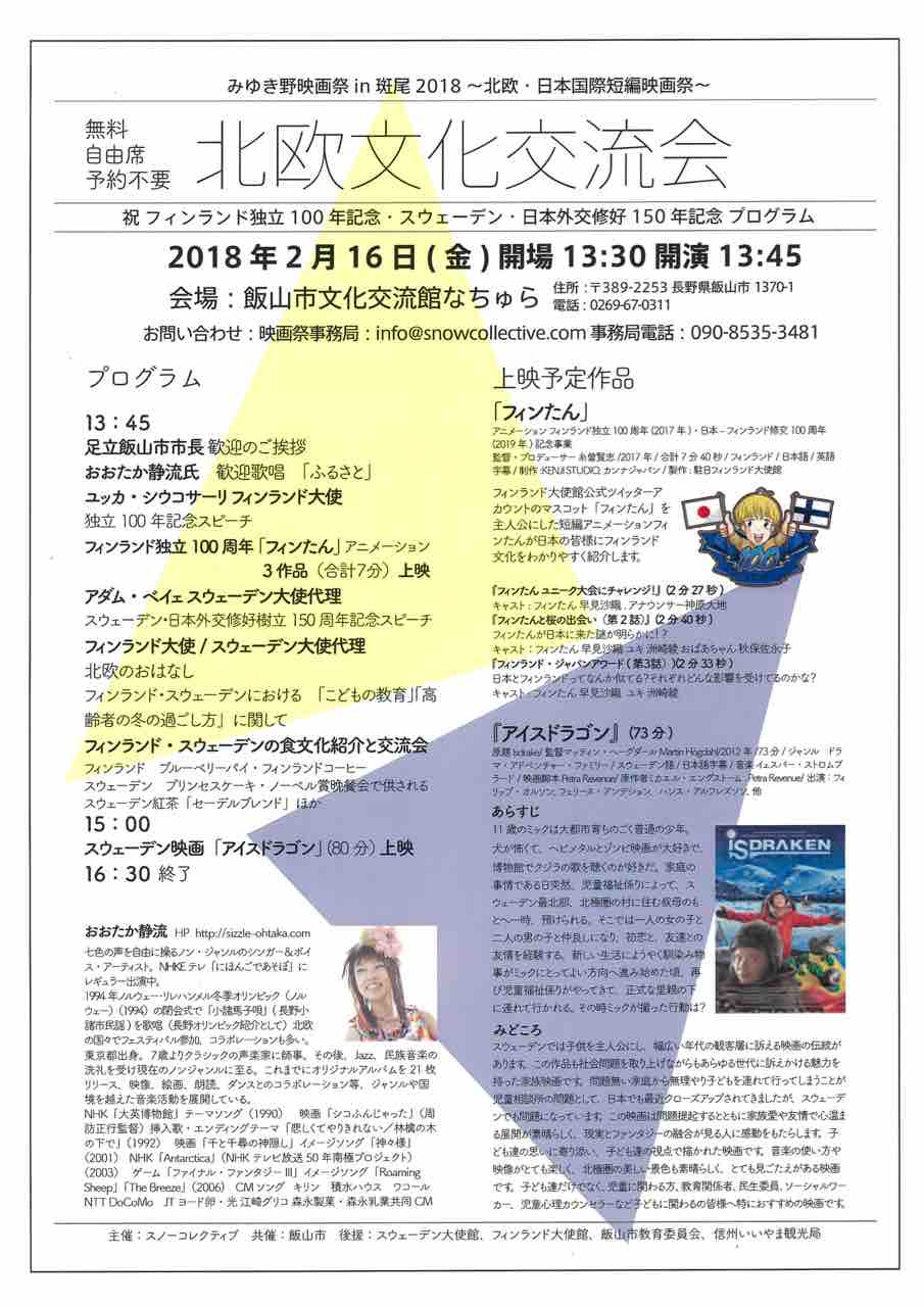 みゆき野映画祭in斑尾、悪天候のため10年間で初めての雪のスクリーンでの上映が中止に、ワークショップで子どもたちが短編映画を製作して披露 2018年02月20日 10:15 雪で作ったスクリーンで北欧の短編映画を中心に上映する第10回みゆき野映画祭in斑尾が16-17日、長野県飯山市の斑尾高原ホテルであった。今回は開催10回という節目に当たる。16日は午後1時45分から北欧文化交流会が開催された。会場となった飯山市文化交流館なちゅらは隈研吾氏の設計で、木材を使用したデザインが印象的な建物だ。 「映画祭」カテゴリの最新記事 タグ :#みゆき野映画祭 < 前の記事次の記事 >